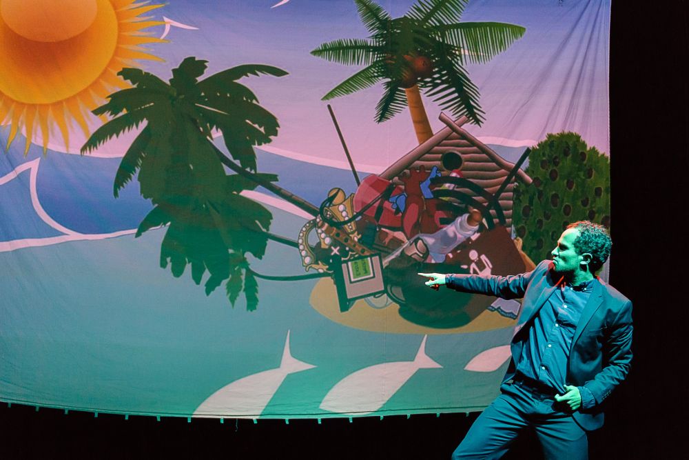 "Benedikt Zimmermann als Robinson und Mike Sobotka als Freitag spielen das unter der unauffälligen, aber wirkungsvollen Regie von Frank Piotraschke sehr anschaulich, anspringend und anstellig."