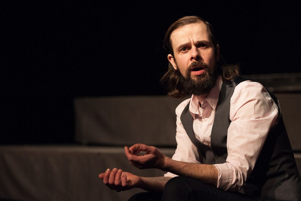 "Eine knappe Stunde lang darf das Publikum Schauspieler Nik Mayr dabei zusehen, wie er ein minimalistisches, pyramidenartiges Bühnenbild, an dessen Spitze ein Rednerpult thront, beschreitet und dabei eine große, schwere Frage stellt: Wer Schuld daran trägt, dass auch heute Menschen sterben, weil sie einer ,falschen' Religion angehören. Sind es Waffen? Ist es das System? Der Leviathan? Der Demagoge? Oder sind es die Menschen"